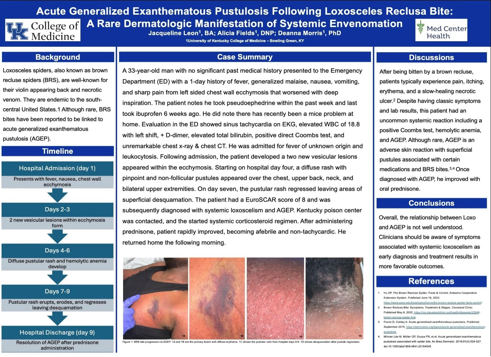Jacqueline Leon is a fourth-year medical student at the University of Kentucky College of Medicine. She completed her undergraduate education at Texas Christian University with a Bachelor of Arts in Biology and Spanish. Jacqueline has a passion for mentoring pre-medical undergraduate students as a co-founder of MedPals, an undergraduate to medical student near-peer mentorship program, and for advocacy through her participation in the Kentucky Dermatology Trainee Advocacy Day. Outside of medical school, Jacqueline enjoys running and watching Formula 1 racing.