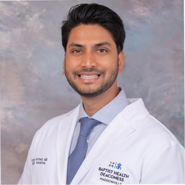 Uqba Ahmed, MD is from Toronto, Ontario. He completed his undergraduate education at the University of Ontario Institute of Technology and earned his medical degree from Caribbean Medical University. He is currently a PGY-3 in the Family Medicine Residency Program at Baptist Health Deaconess in Madisonville, KY. Dr. Ahmed has a strong interest in outpatient family medicine and values patient-centered care. Outside of medicine, he enjoys playing soccer, working out, astronomy, home renovation projects, and exploring nature. He especially cherishes time spent with his wife, daughter, family, and friends.